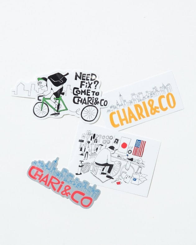 YUSUKE HANAIが初めてCHARI&COの店舗を訪れたときに自転車パーツ売り場に残したMURAL ARTを元にしたアートワークや、マンハッタンの摩天楼、YUSUKE HANAIフォントのCHARI&COロゴなど、どれもYUSUKE HANAIが感じたCHARI&CO、ニューヨークを表現したスペシャルアイテムです。
