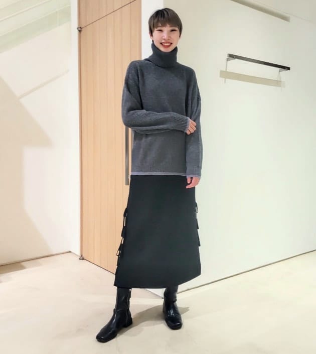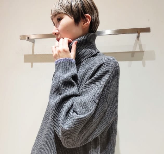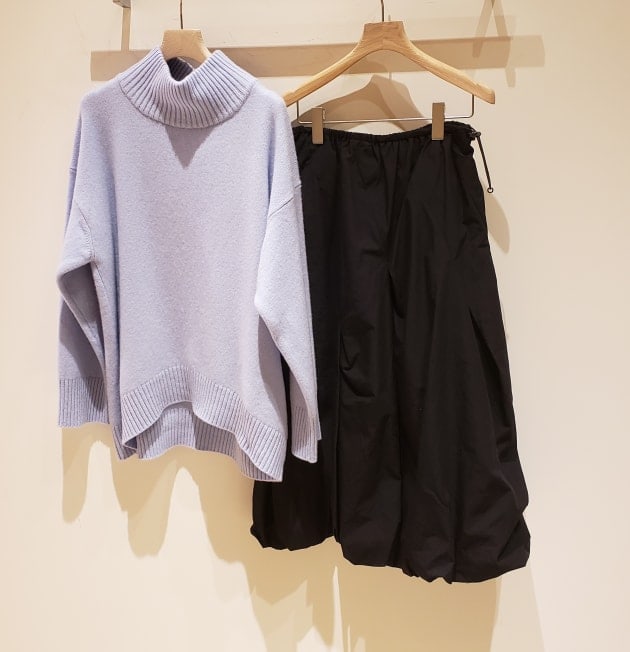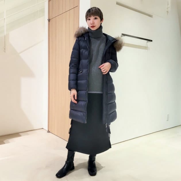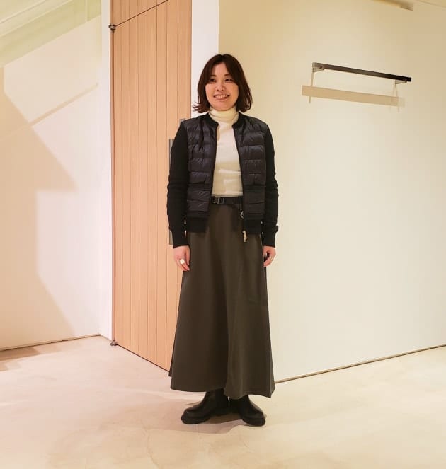 こちらも、ニットとダウンのコンビネーションが特徴。