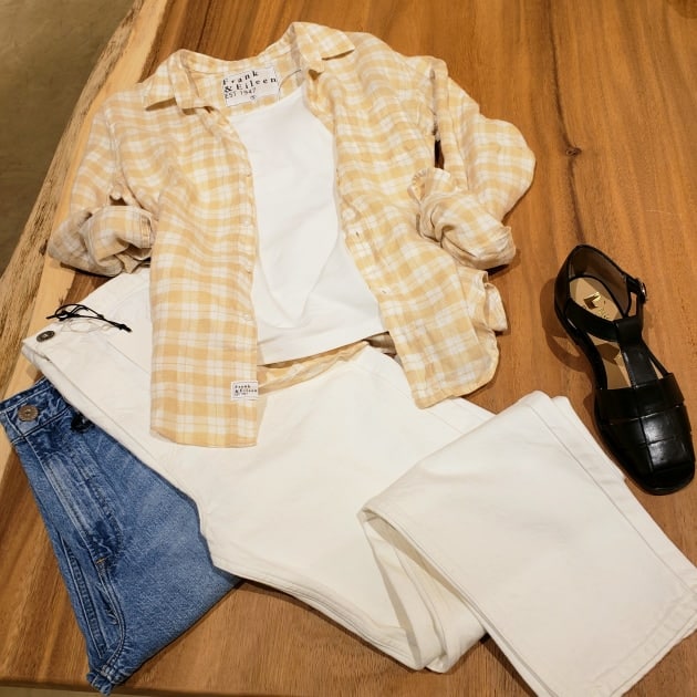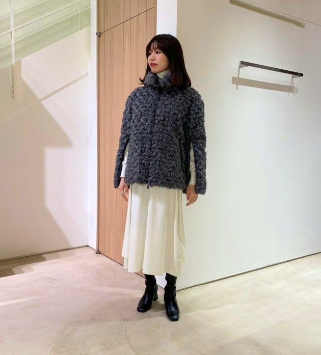 白やベージュなど、同系色との組み合わせで、より女性らしく柔らかい印象に!