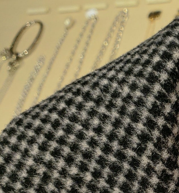 モヘヤ混のウール素材で、柔らかくて軽い着心地。