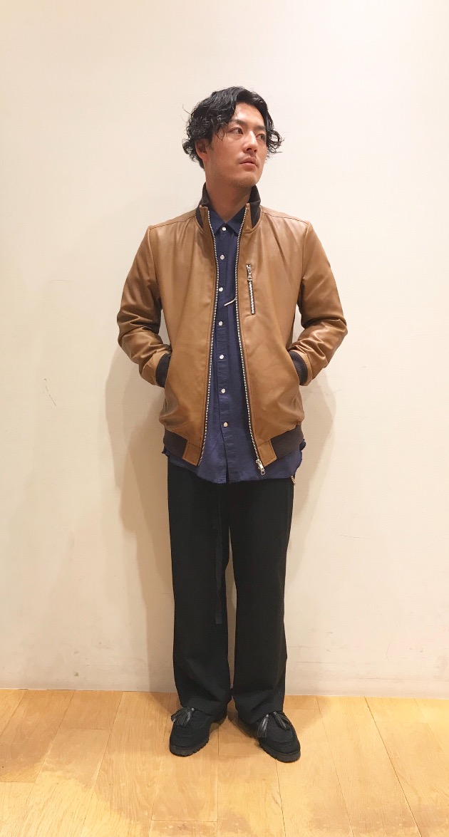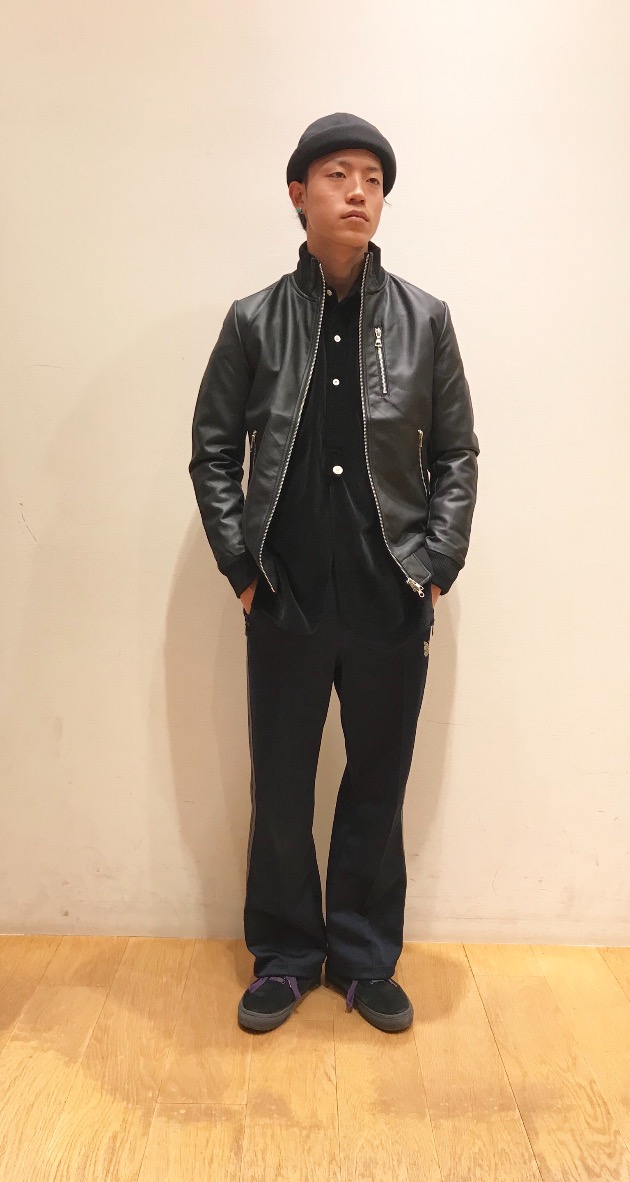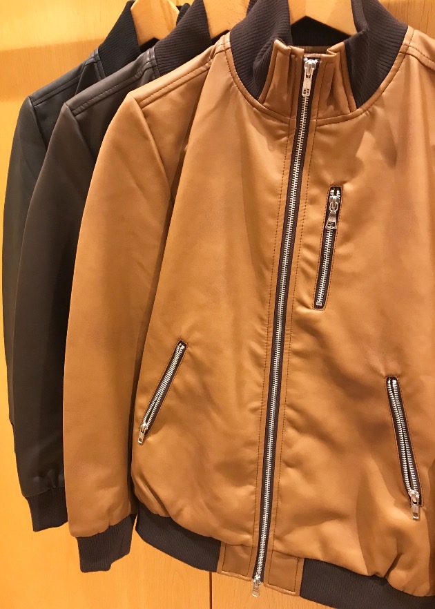 フェイクレザーのブルゾンです!シンプルなので合わせやすく、シャツやニットなどと合わせてみてはいかがでしょうか!