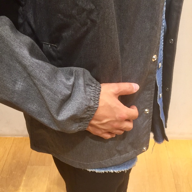ドレープ感と光沢感を兼ね備えたポリエステルツイルを使ったコーチジャケットです!