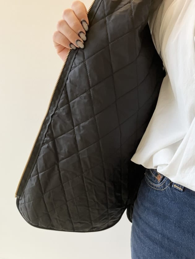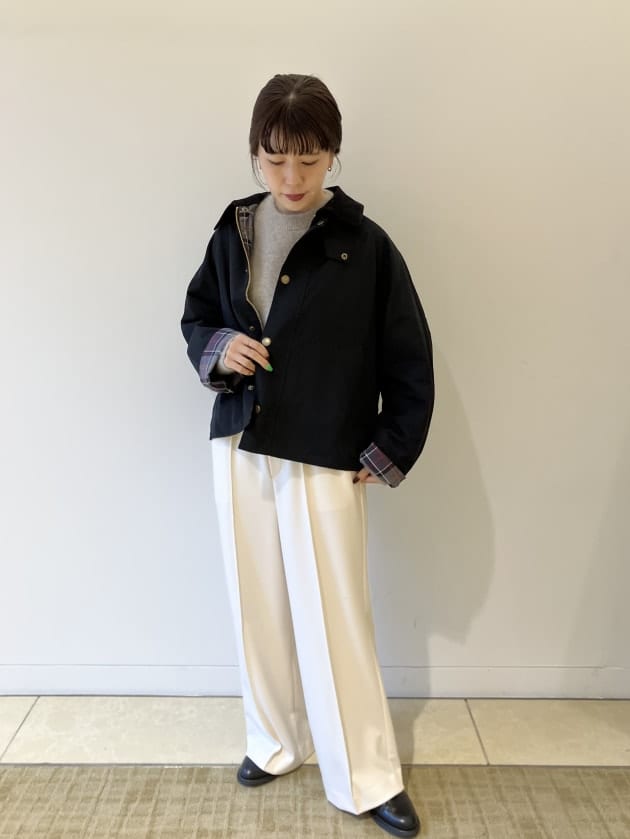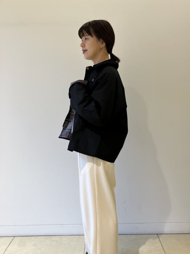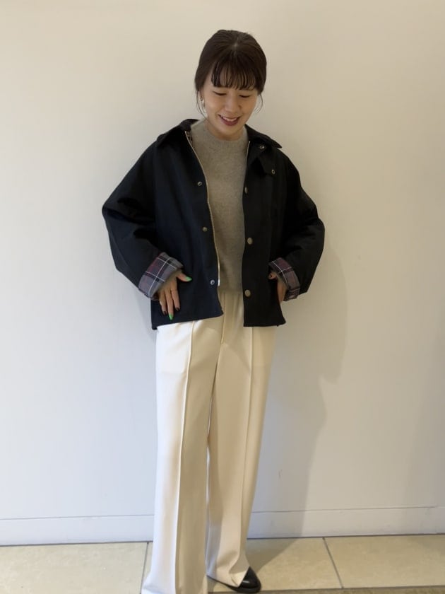 インナーに厚みのあるニットも着用しやすいサイズ感で、ヒップが隠れるのも嬉しいポイントです。