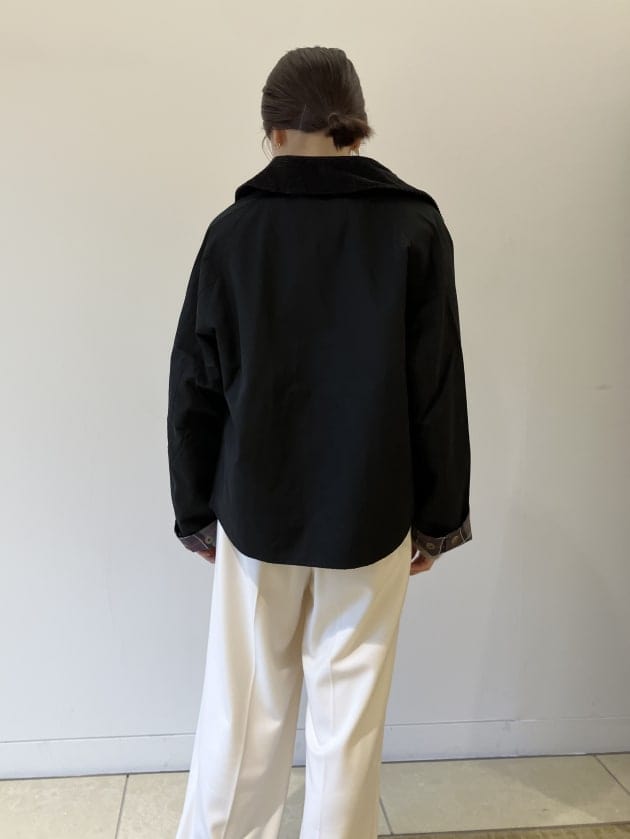 コーデュロイ素材の襟や存在感のある前立て、後ろ身頃の深めのセンターベントなど、ディテールも魅力的ですね。