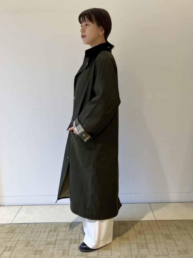 乗馬用コートに由来する本格ディテールをベースにしながら、着丈・身幅などのサイズバランスを女性らしく調整した1着になります。