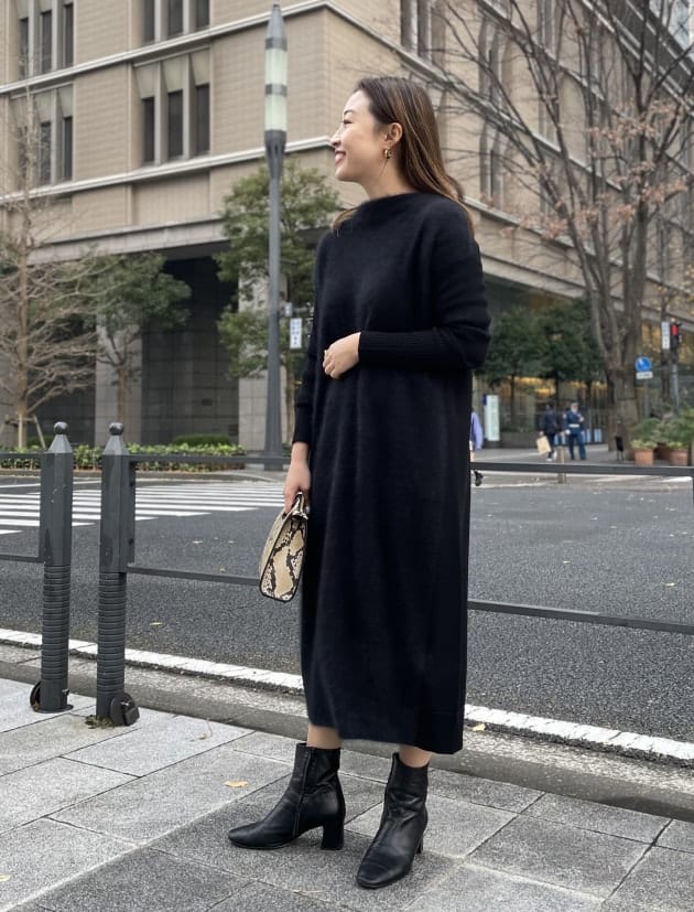 私も着てみたのですが、1番のポイントはAラインシルエットが本当に綺麗で女性らしく着ていただけます◎!