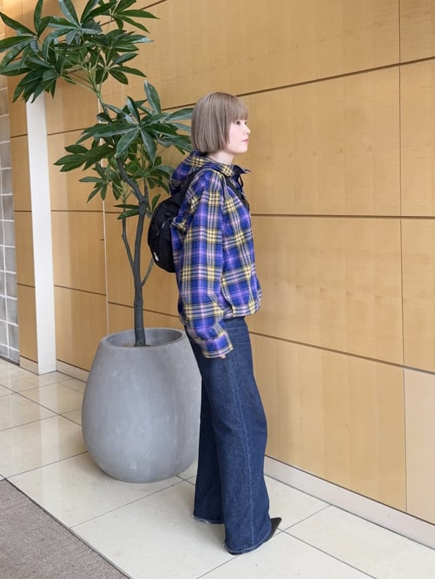 イエローのマフラー。ワンポイントでシンプルなコーデの時に大活躍!
