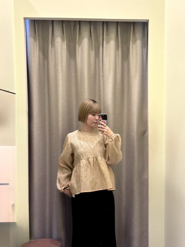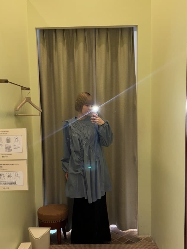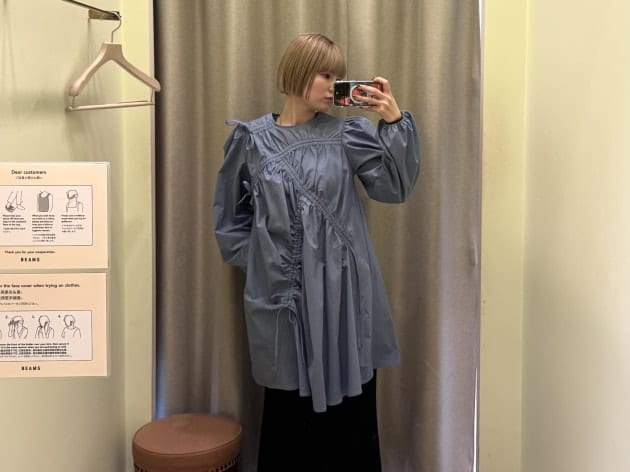 ブルーのカラーがかわいい。袖周りもボリューム感も◎