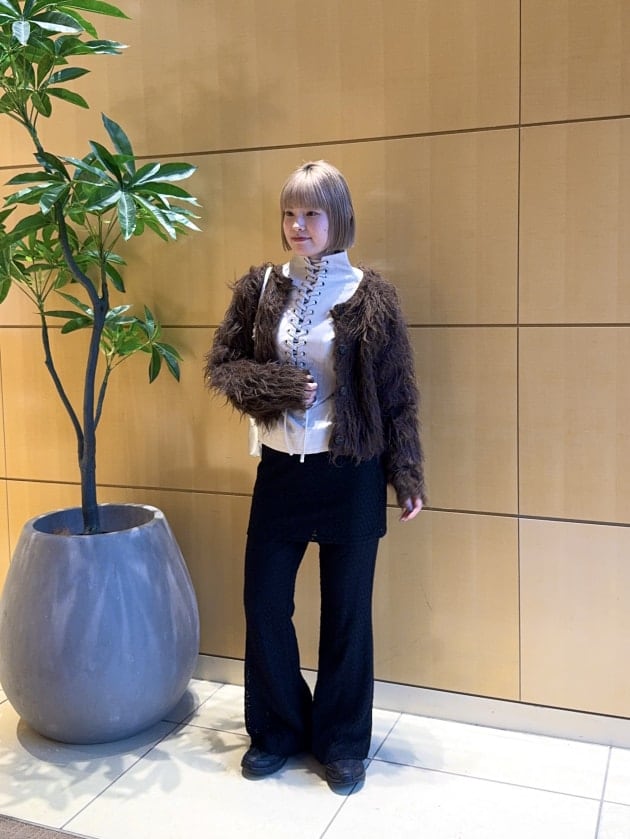 可愛いモケモケシャギーのニットバックもワンポイントになって可愛いのでおすすです!