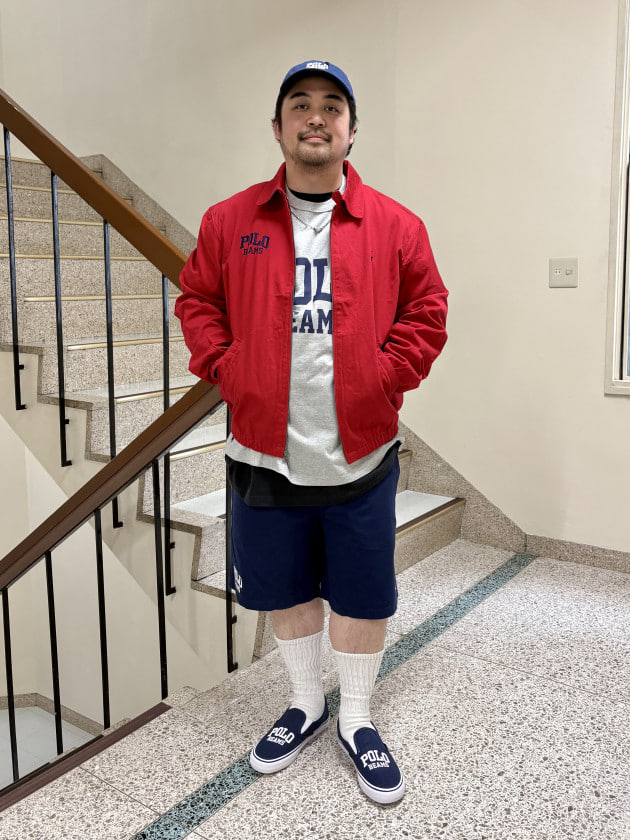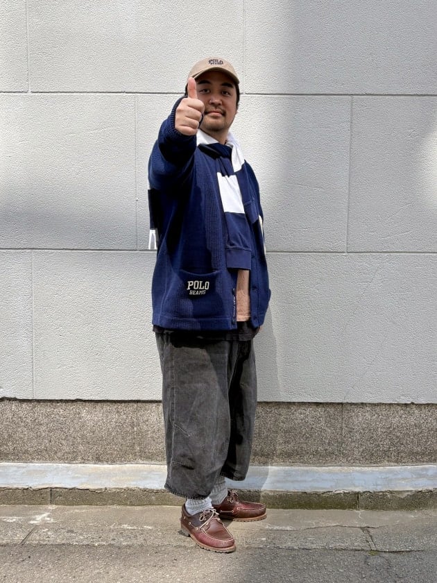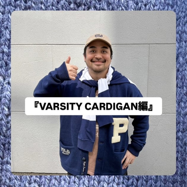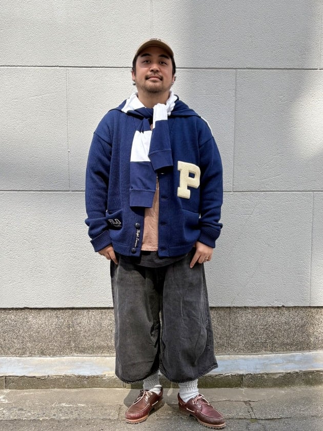トップスにはPOLO RALPH LAURENの別注LS V-NECK VARSITY CARDIGANを着用しております。