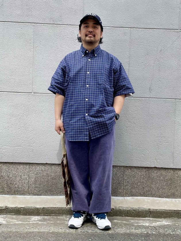 トップスには定番となっているワイドフィット5分袖ボタンダウンシャツを着用しました。