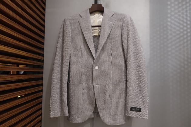 <BEAMS F>ストレッチシアサッカーストライプジャケット