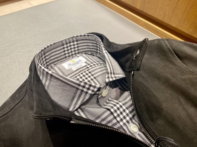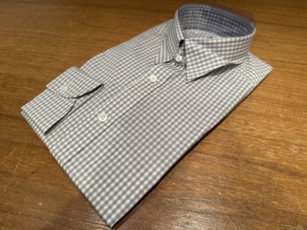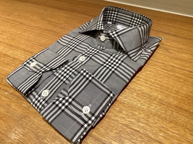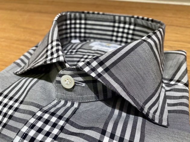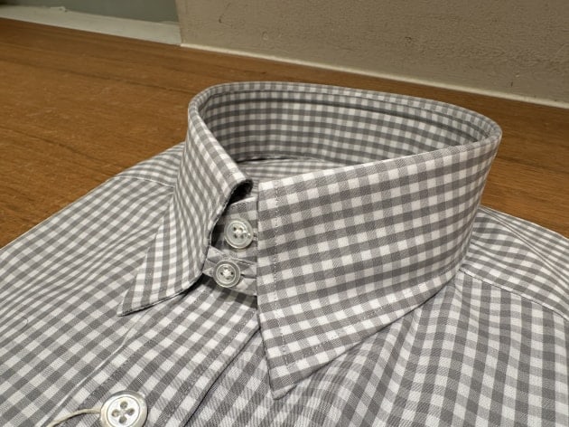 新鮮なグレーチェックタブカラーシャツが入荷しております。