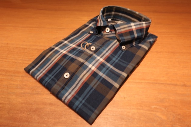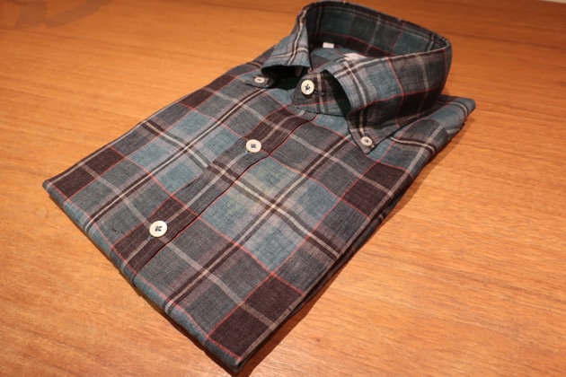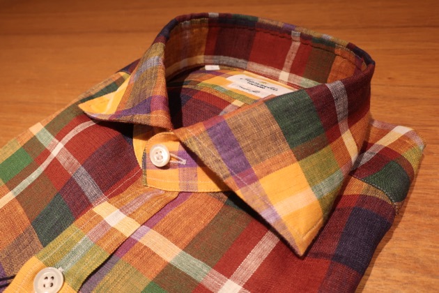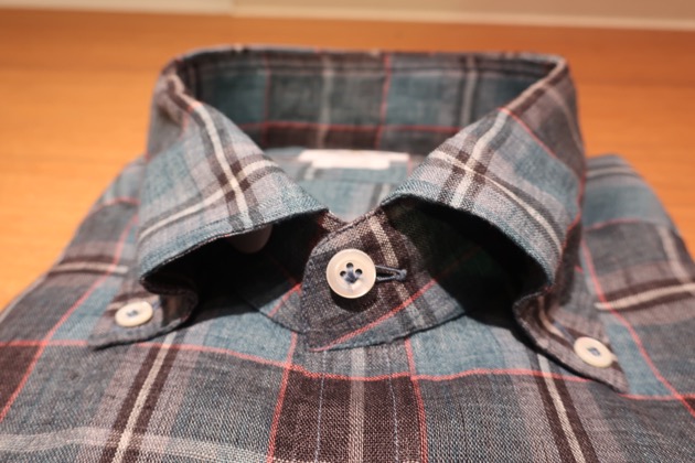 襟型は、ボタンダウンと思いきやタブカラーという点も不意をつかれます。