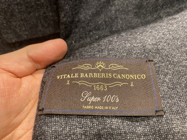 生地は、カノニコ社の「ウール&リネン」生地を使用いております。リネン特有のシワ感を楽しんで頂ける1着です。