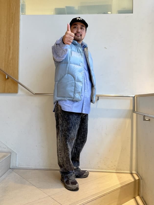 パンツには昨年から引き続き大人気の5ポケット クウォーターレングス ワイドデニムを着用しております。