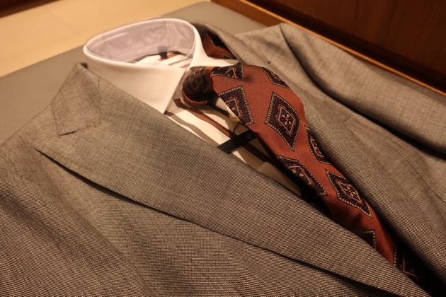 生地の主張が適度に強いので、シンプルなネクタイが栄えます。