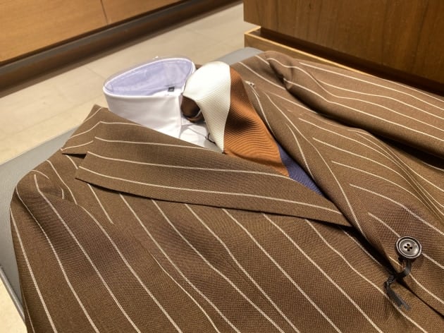 <TAGLIATORE(タリアトーレ)>より、発酵してそうなブラウンのスーツが入荷しております。