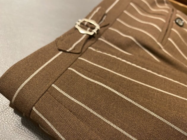 シングルのワイドストライプで少しライトなブラウンが春夏の季節感を感じさせます。