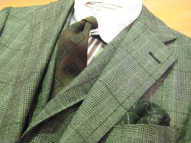ガッシリした生地感が特徴のグレンプレイドにオーバーペンが入ったこちらです。