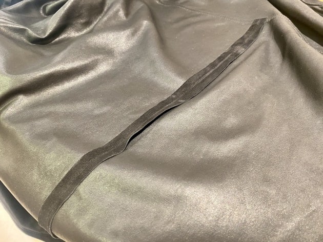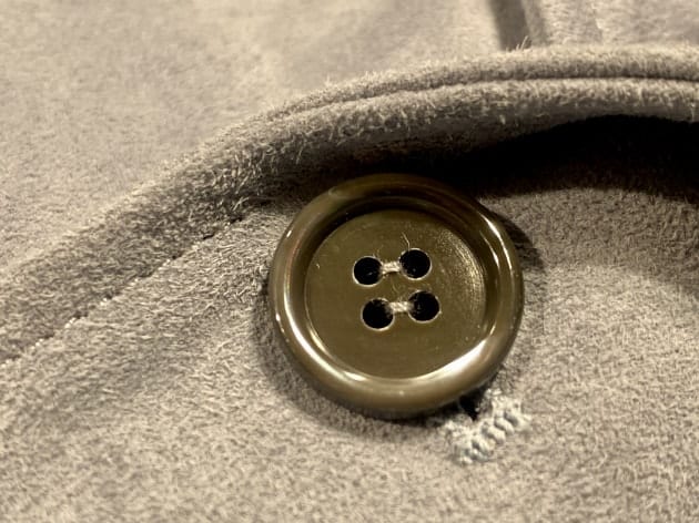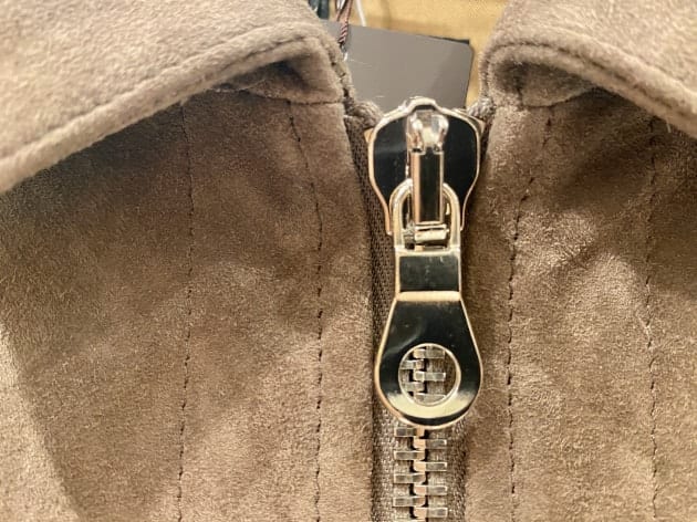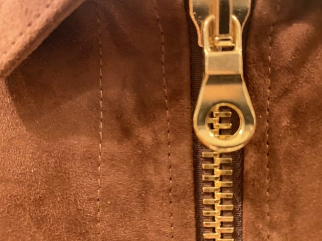 スナップボタンとジップはレザー生地に合わせたシルバーです。
