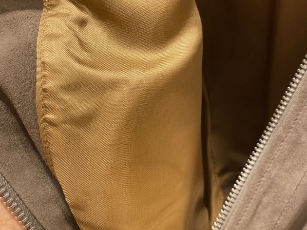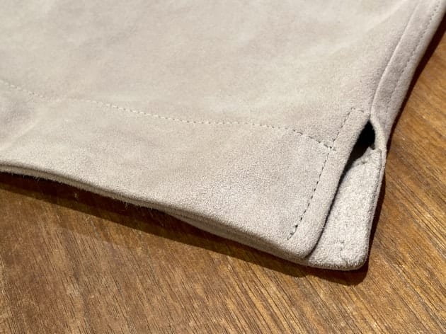 グレージュのゴートスエードが非常に柔くて上品でございます。