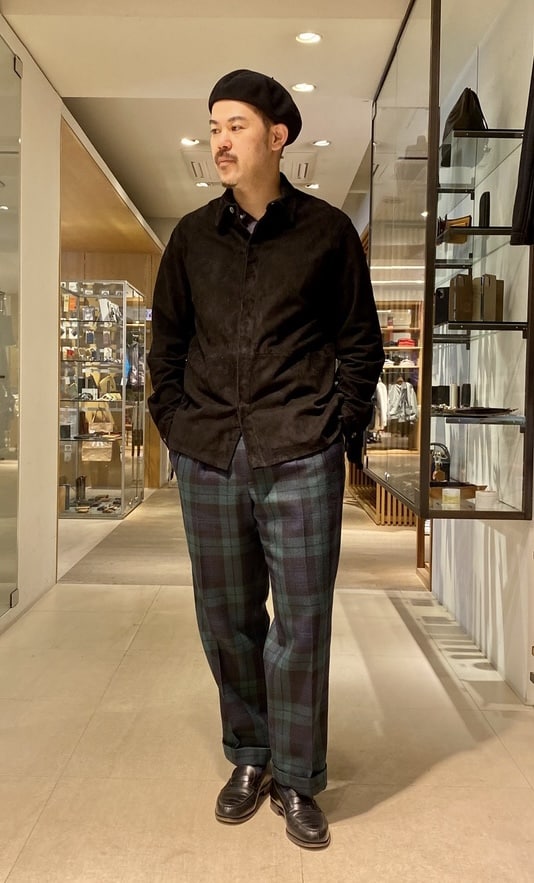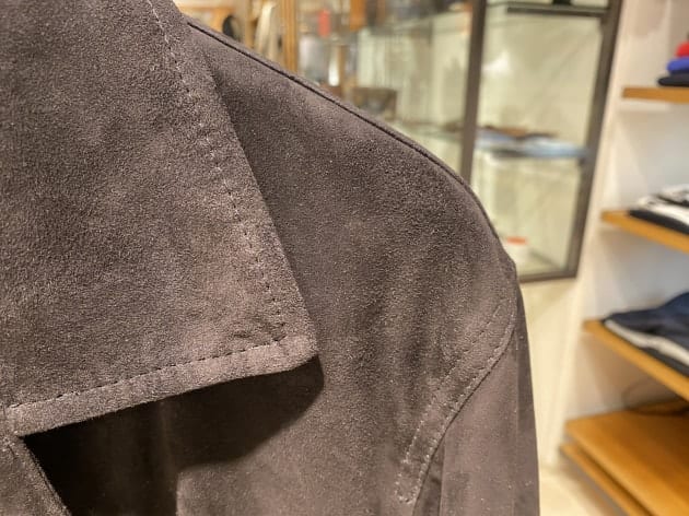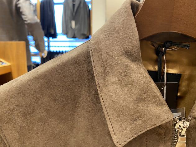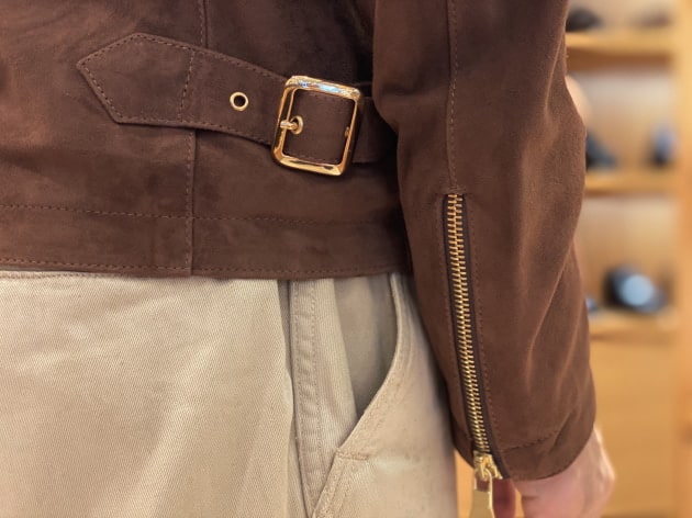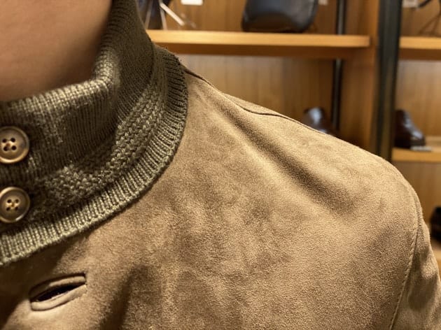 ハードな印象が強い表革も良いですが、上品なスエードタイプもワードローブに馴染みお勧めです。