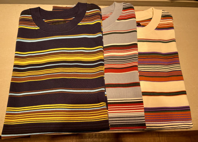 他の3大バスクシャツブランドが、しっかりした生地感の経編みに対し、丸編みを採用しているので、ソフトで肌触りが良く、通気性に優れています。