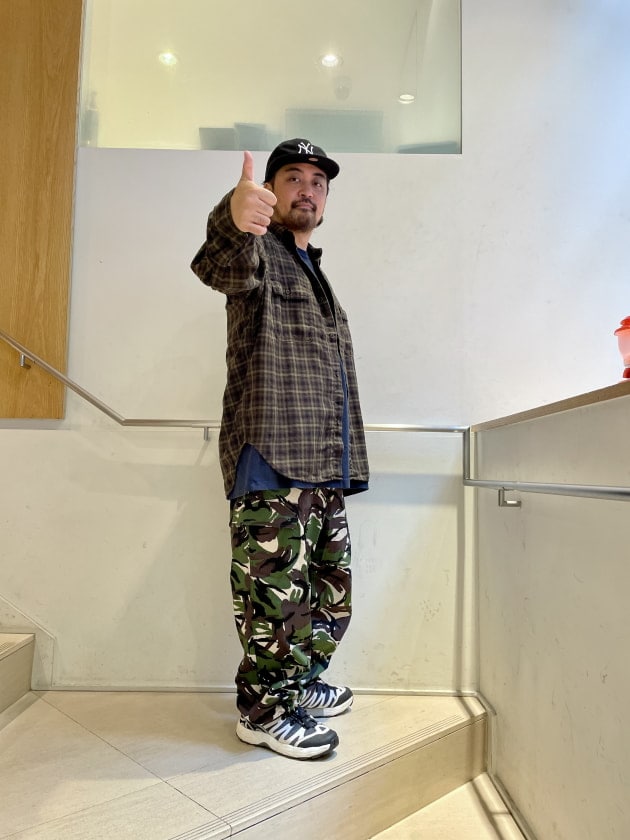 ライダースジャケットという男くさいアイテムにはやっぱり軍パンが合いますね。