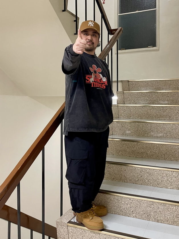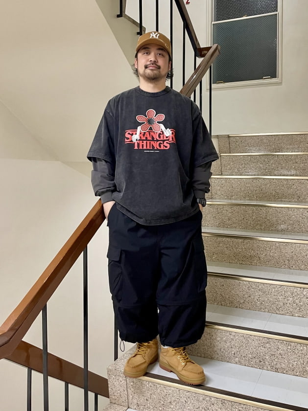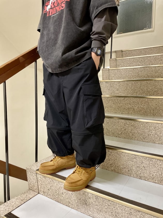 ちなみにパンツはSSZの迷彩カーゴパンツ、ブーツはTimberland × BEAMSのモックトゥを使用しております。