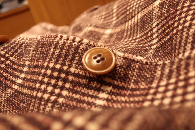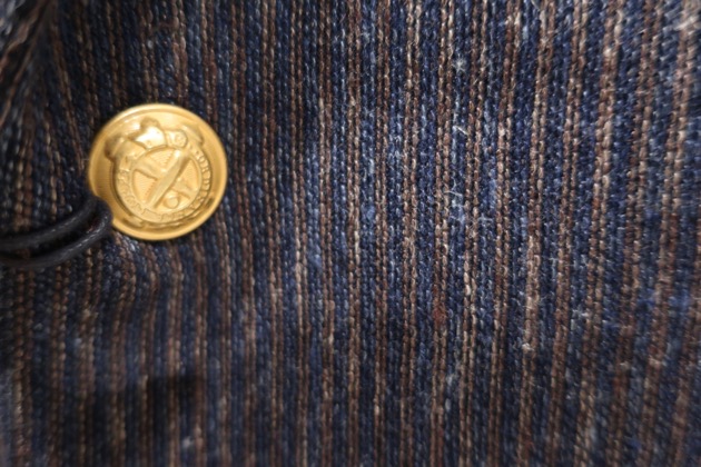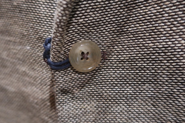 ボタンも、爽やかなブルーには白でスッキリと、ブラウンには茶色でございます。