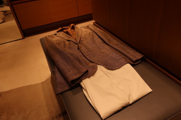 裏地を背抜きにする事によって、軽くて柔らかい着心地を実現しております。