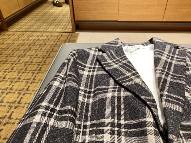 モノトーンで構成されたチェックジャケットの紹介です。