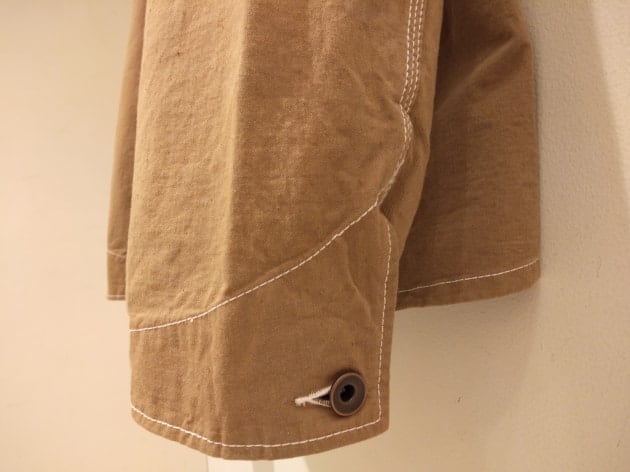1950年代のデッドストックから型紙を起こし、当時販売されていたサイズに縮率を入れ縮ませる事で、1950年代当時のサイズ感を実現しています。