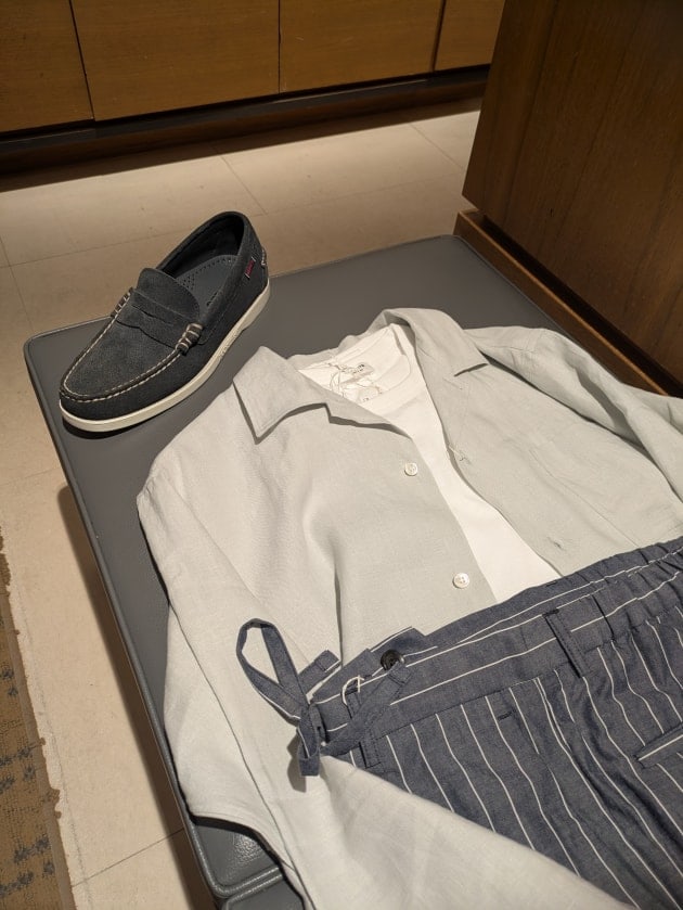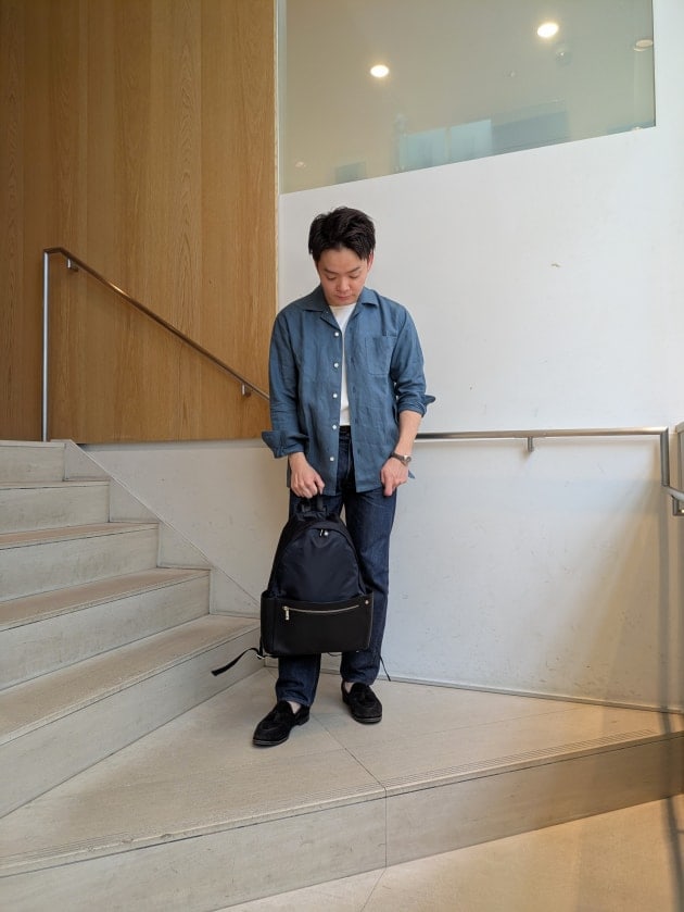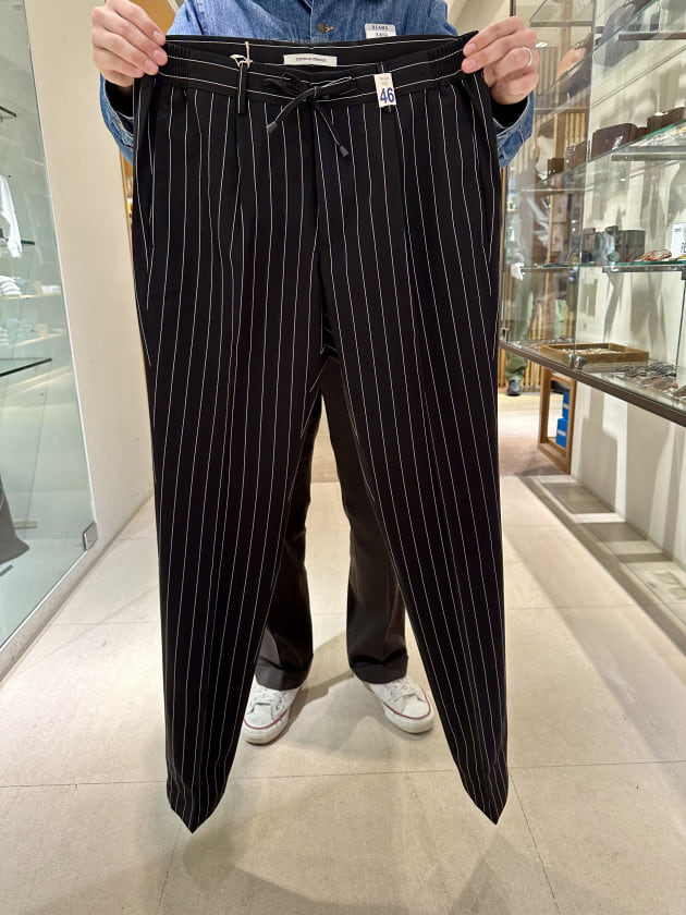 ちなみにパンツには百名品でお馴染みのワイド テーパード デニムを着用しております。