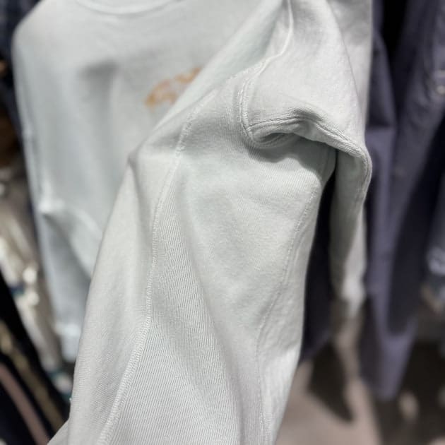 肩の落ち感もしっかりあって、袖も肘が隠れるくらい。着丈も長めでお尻まですっぽり隠れる安心感!