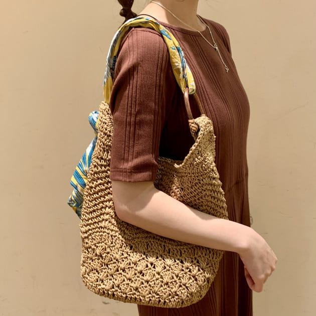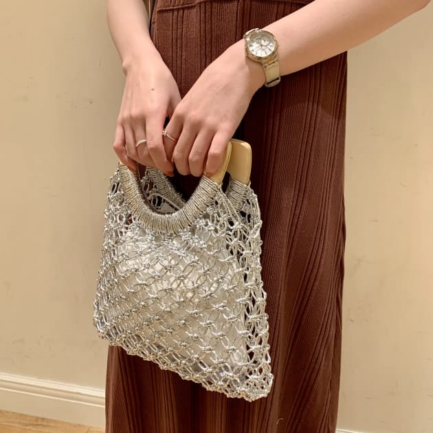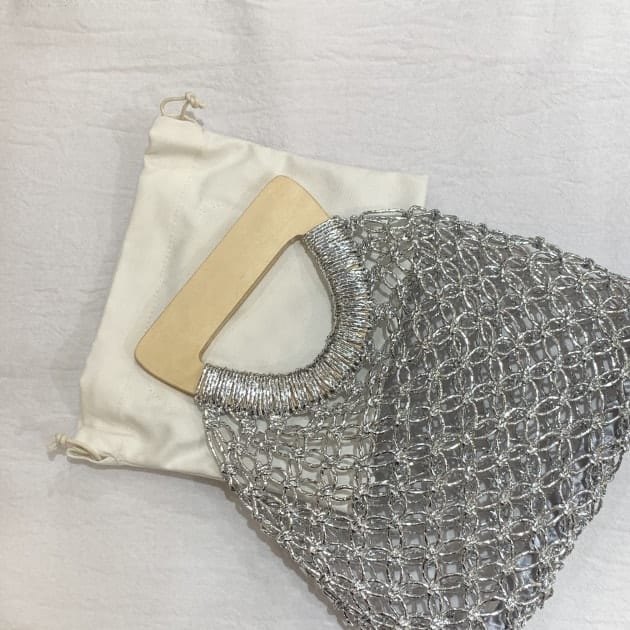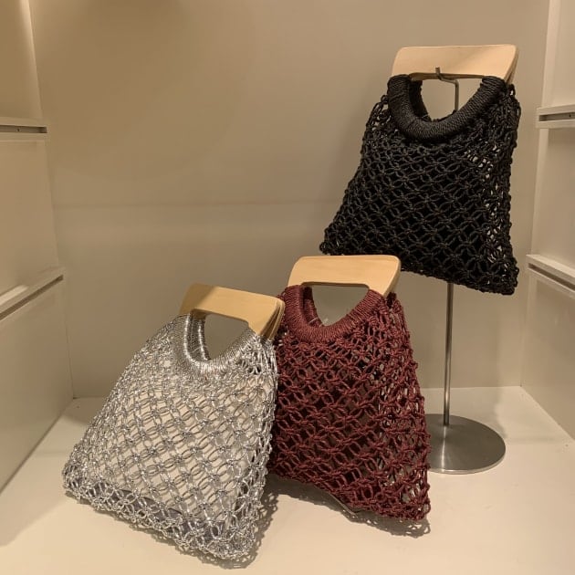 大きめな編地のハンドバッグです^ ^
