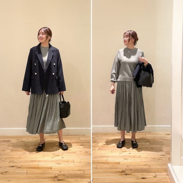 トップスはデニムやワイドパンツと合わせてカジュアルに着ることもできますし、スカートはニットやシャツと合わせることで違った雰囲気のコーディネートを楽しむことができます。