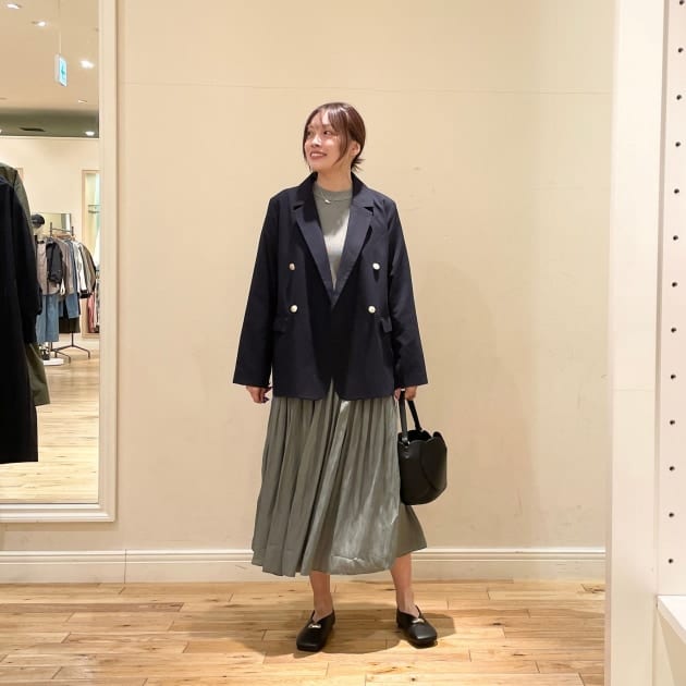 ジャケットとセットアップ風のアイテムを組み合わせることで、バランスの良いきれいめスタイルが完成します♡