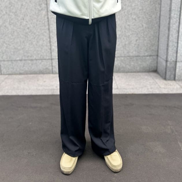 ワイドなシルエットですが、綺麗な見え方になるレングスのラインが特徴的です。