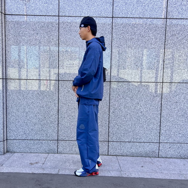 ゆるめのシルエットでストリートっぽさを出しつつ、清潔感のあるブルーが全体を上品にまとめています!