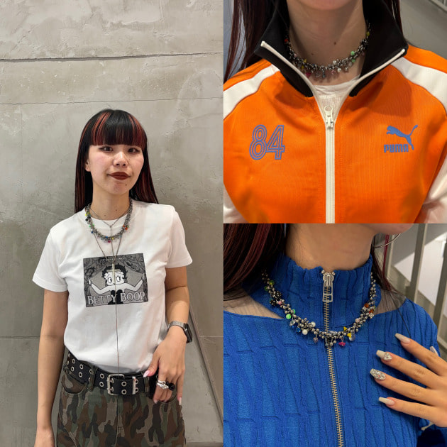 ボディピアスやパール、ストーンなど様々なパーツが贅沢についています◎少しパンクですが、可愛いんです♡