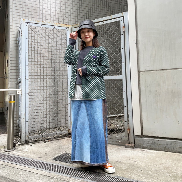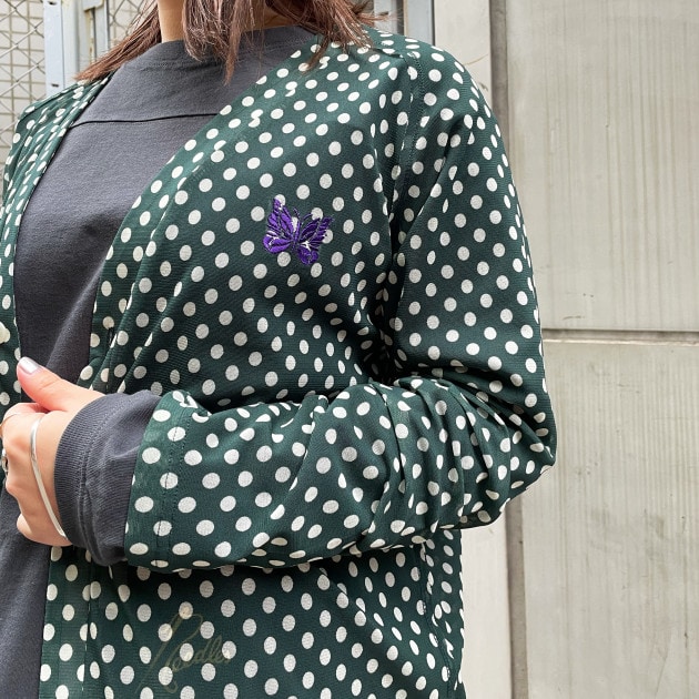 ドット柄ですが深いGREENなので、甘くなりすぎず着て頂けます。