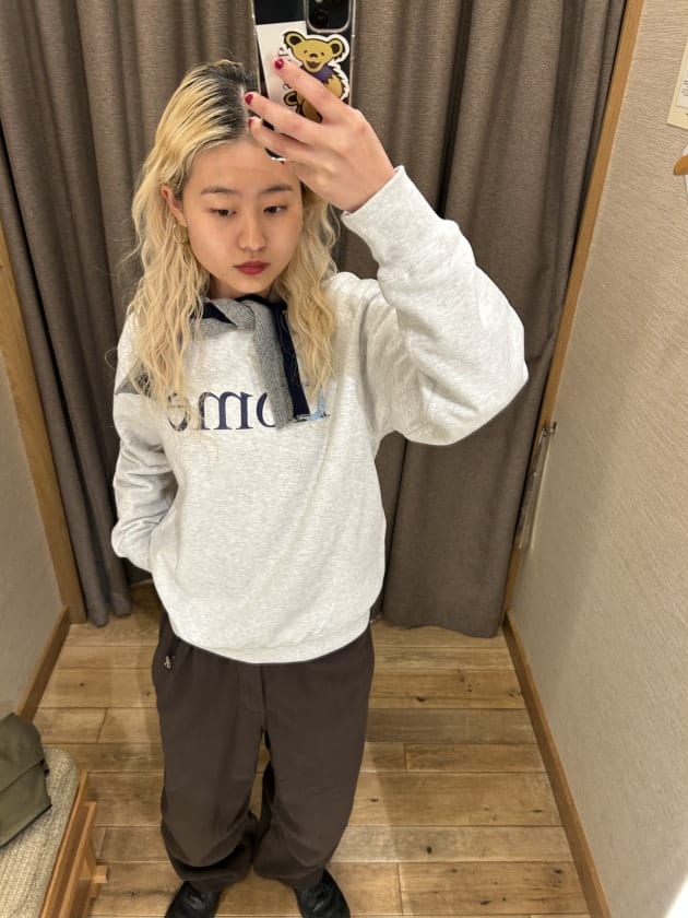 冬になるとスウェット率高めになるので新たに仲間入りしたアイテム〜レディースの方はMサイズで十分♩メンズライクなゆったりとしたシルエット!シンプルなロゴで使いやすいしcome homeなのも可愛い☆