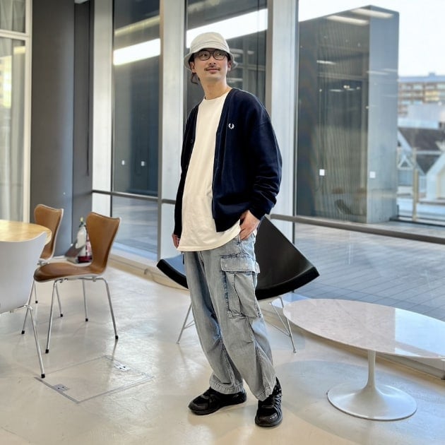 個人的にインナーにはあえて綺麗めなシャツを合わせるのも良いと思います(^^)