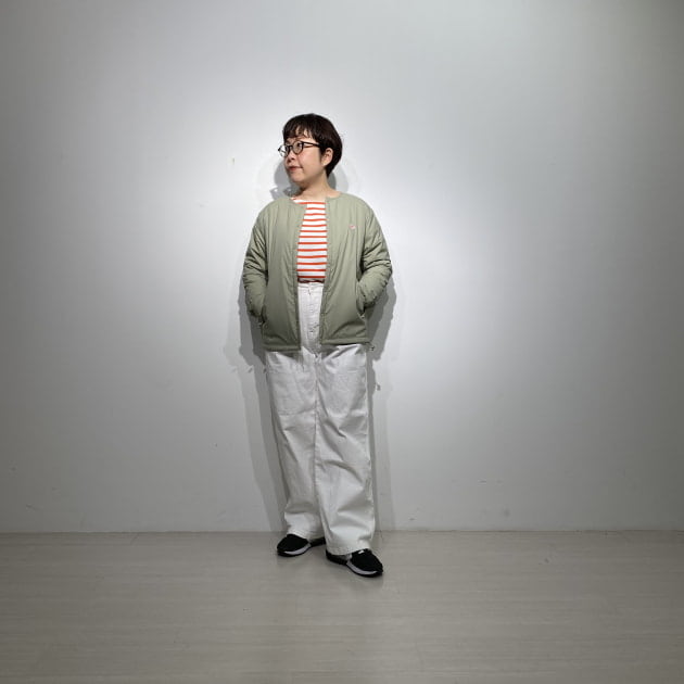サイズ感はややゆったりで、薄手の中綿が入っているので軽く暖かいです◎