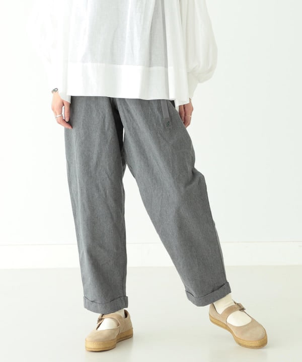 「GRAMICCI(グラミチ)」を象徴する片手で調整出来るウェービングベルトに、ゴム引きのイージーウエストは、休日のカジュアルスタイルにピッタリ◎