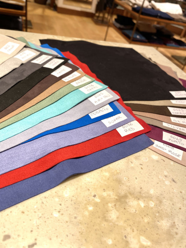 ・NAPPA CERATA(天然なめし)、NAPPA SILK(クロムなめし)、CAMOSCIO(スエード)、ラム革(ビームス 静岡限定)の4種類の革に対して複数のカラーを用意しております。