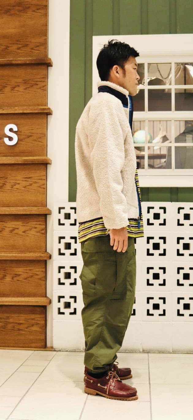 ◼️表地に毛足の長いポポンデッド•シェルパ•フリースを採用しており保温性◎
