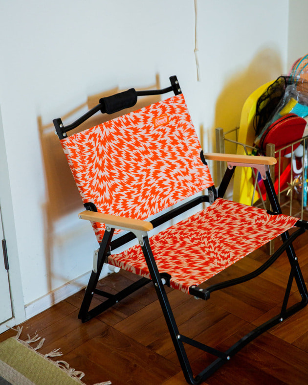 毎年好評を博しているアウトドアブランド<Coleman(コールマン)>との第12弾別注アイテムは、世界的デザイナー<ELEY KISHIMOTO(イーリー キシモト)>とのトリプルコラボレーション!<Coleman>で人気の高い『コンパクトフォールディングチェア』をベースに、<ELEY KISHIMOTO>の代表作でもある『FLASH(フラッシュ)』パターンを採用。普段の雰囲気とはまた一味違うモダンファニチャーのような仕上がりとなりました。